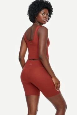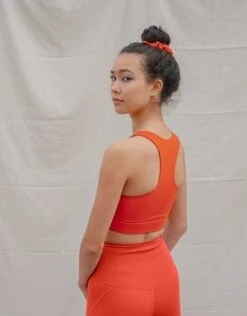 You’ll feel supported by the high collar and racer-back, while the cropped length and sleeveless design leave you the freedom to move. In an effort to help end plastic waste, the top is made with 79% recycled polyester and 21% elastane.