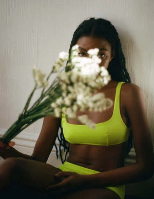 A simple, classic square neck top that is easy and supportive. Minimal detailing includes a metal closure at back and darts at the bust provide shaping.