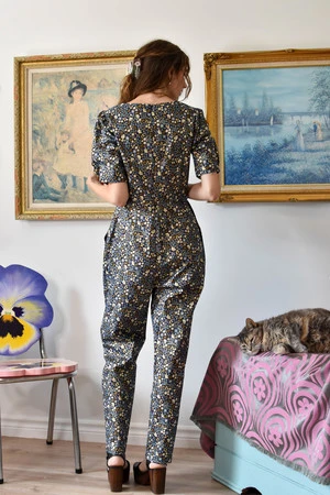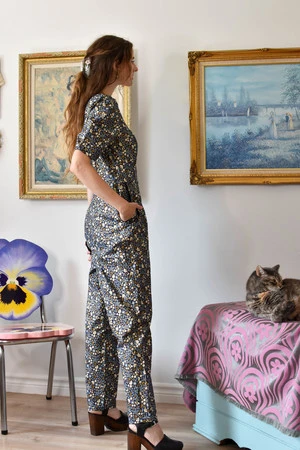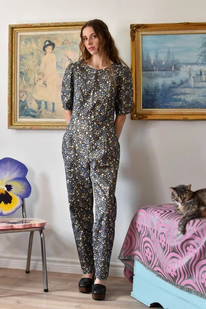 A vibrantly patterned short-sleeve cotton jumpsuit?! Trust us – Birds of North America’s Brambling Jumpsuit just WORKS. This returning hit style has a crew neck, a loose tapered leg and front pockets. It’s surprisingly flattering AND easy to wear, and comes in this gorgeous print. Dress it up with a pair of high heels and an up ‘do, or wear it more casually with a sweater on top and a pair of chunky boots.