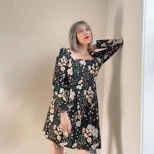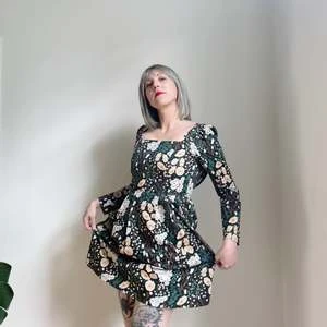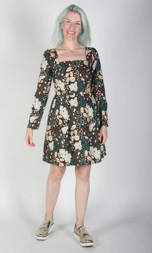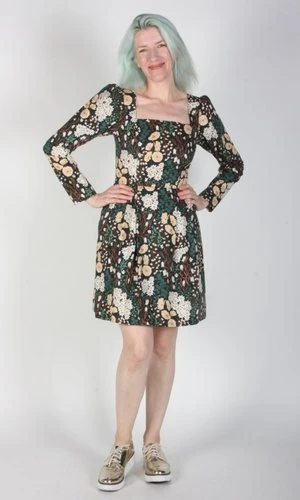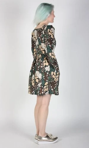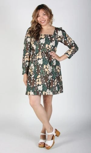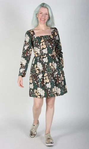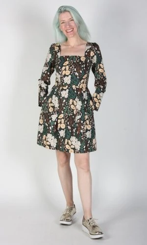 Birds of North America’s Twixt Hell and the White Dress is their longest style name ever, a special title for a special dress! This style has a square neckline and full length sleeves. It has a vintage-inspired fit-and-flare cut with waist pleats and side pockets. The printed cotton is sure to add a bit of fun no matter where you rock this dress.