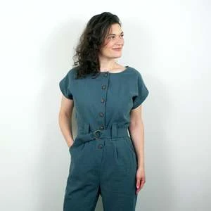 A classic jumpsuit with a don’t-mess-with-me attitude. It has buttons down the front for easy on / off, a wide adjustable belt, and pockets at the hips.