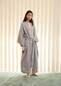 – Features a self fabric waist tie and extra wide sleeves