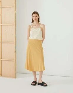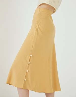 Bias skirt with an open side with buttons.