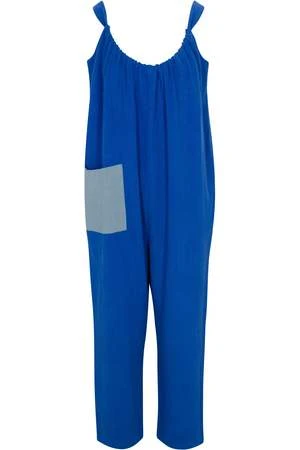 Comfy, baggy overalls without a zipper or button in sight. The drawstring in the back lets you adjust the neckline by cinching the material together.
