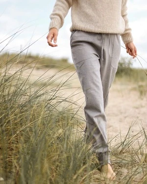 The Linette trousers are made of 100% soft, organic cotton featuring outside pockets, an elasticated waist, and a tie front. Trousers are made of cotton in a fine twill weave that gives the fabric ultimate texture and softness. These versatile bottoms can be worn as daywear, sleepwear, or simply for lounging. Pair with the Gai & Lisva Columbine sweater for an easy weekend outfit.
