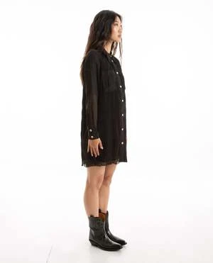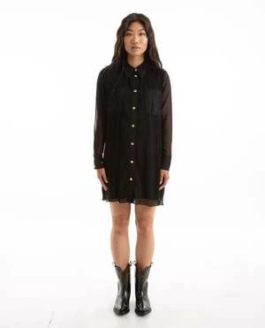 GanniPleated Georgette Shirt Dress – Black