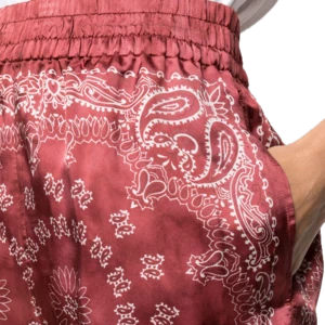Red satin bandana-print satin shorts from Golden Goose featuring bandana print, elasticated waistband and two side slit pockets. 100% Viscose.