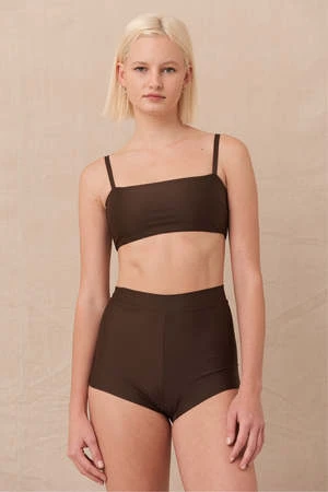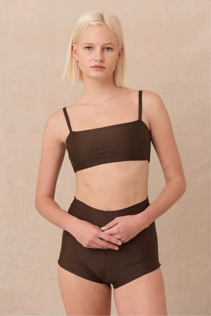 A simple band style top with clean lines and wide set, adjustable straps. Mix and match with your favourite bottoms or wear under a sun top or surf suit in the waves.