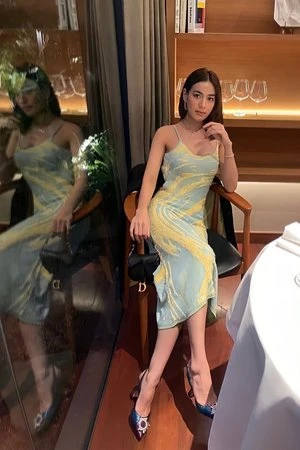UK 10 (US 6) M: Length 39.37″ (100 cm), Bust 31.5″ (80 cm), Waist 31.5″ (80 cm), Hip 31.5″ (80 cm), Hem 50″ (127 cm), Armhole diagonal 5″ (13 cm), Neck drop at the front – not including strap 2.3″ (5.8 cm).