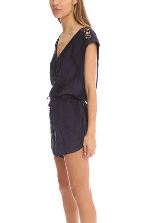 Tank style romper with beautiful embroidery detail and a drawstring at the waist to embrace a women’s silhouette by IRO. Perfect for the in between seasons weather, style with moto boots and a leather jacket!