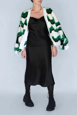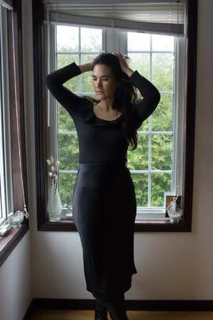 Jacoba Jane’s Classic Silk Satin Midi Skirt is an elegant choice for work and play. Made out of a beautiful silk satin, this skirt has fitted cut with a slight flare at the bottom. The elastic waist and midi length make it comfortable and professional to wear all day long. Style it more casually with a vintage graphic tee or cami.