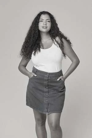 Classic, button front mini skirt with a fitted waist and a-line silhouette. Impeccably flattering on a range of body types, this wardrobe classic looks equally darling with a cool vintage tee, oversized sweater, or French tucked blouse. Features darting on the back, side pockets, belt loops, and monotone buttons. Garment dyed for a lived in look and feel. Designed and produced in California, USA.