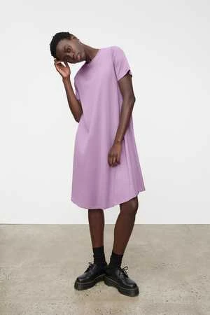 The Classic A-Line Tee Dress has a standard fit through the shoulders and falls to a relaxed A-line shape through the body. An effortless slip-on style, it can be worn with an off the body fit or cinched in at the waist with a separate herringbone tie belt. Made from 100% certified Fairtrade organic cotton in a mid-weight jersey.