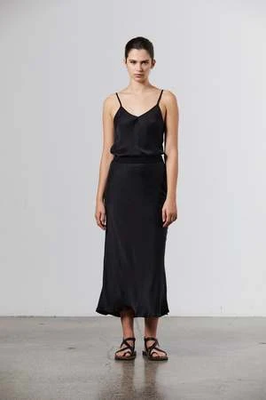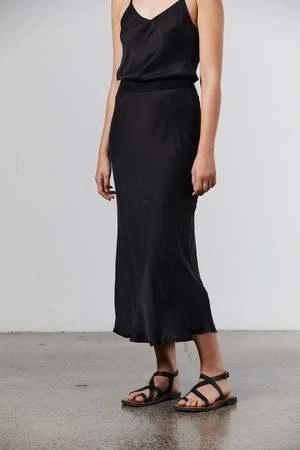 A graceful bias cut skirt of sandwash silk, fully lined, promoting effortless wear of this indispensable wardrobe style.