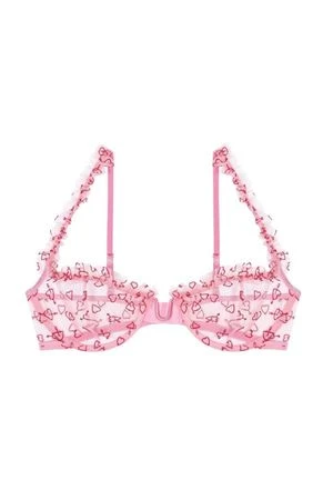 Light pink shade and flocked hearts in deep red – it’s time for a new love story with COEUR line. Bra with a U-shaped underwire front finished with frills. Fastening at the back.