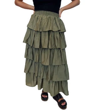 LolaRen Tiered Midi Skirt – Olive