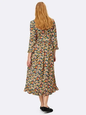The Harper Dress is a Lolly’s Laundry classic style. A classic design and fit with long sleeves, round neckline and front packet. A beautiful print, and the details such as the frills, the waistband and the yoke on the back makes you feel comfortable and ready to shine. Featuring a very soft cotton fabric.