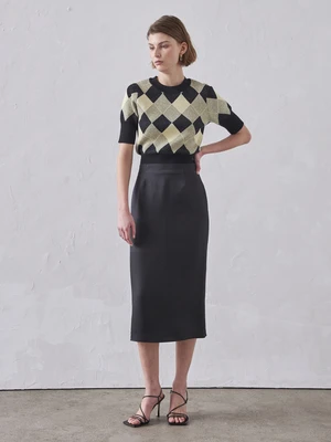 – Midi H-line pencil skirt made with soft and breathable viscose rayon material.