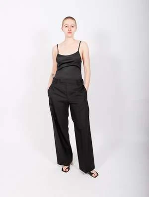 Make a fashionable and comfortable statement with the Jumpsuit in Black Stripy Wool by MM6 Maison Margiela. Crafted with premium wool, this jumpsuit features tailored straight leg pants and a camisole upper that folds down to a belt. Its timeless design is ideal for any occasion.