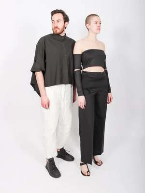 Sarah is a size 6 wearing the Italian size 44, to maintain a lower waist fit.