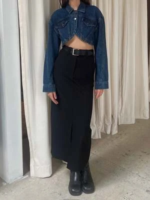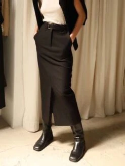 Moon RiverFront Slit Belted Midi Skirt – Black