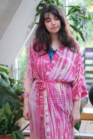 **Natalie Martin’s tie dyed fabric is 100% dyed by hand. Variations in the color and pattern are a natural result of this intensive handmade process. In particular, their Tie Dye prints can vary widely; some styles may have more white than pink or vice versa. We cherish these differences, for they add to the unique charm and beauty of each piece.