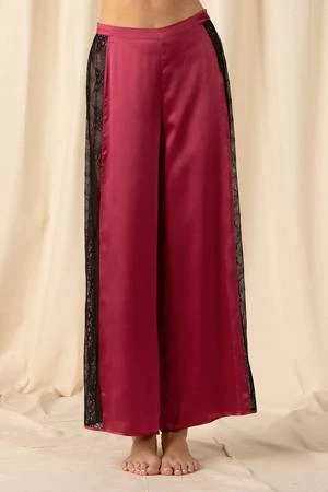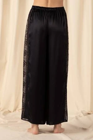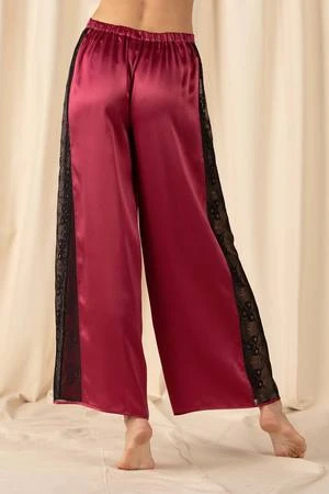 Your new favorite pair of ladies’ silk trousers are here. Elevate any outfit with this essential addition to your wardrobe. Luxuriously soft silk and handcrafted lace detailing make the Mischa Lace Trousers a garment you can’t miss out on. This garment matches with your favorite top but looks best with the Mischa Lace Cut Out Cami or the Mischa Hi-Lo Deep Scoop Tank.