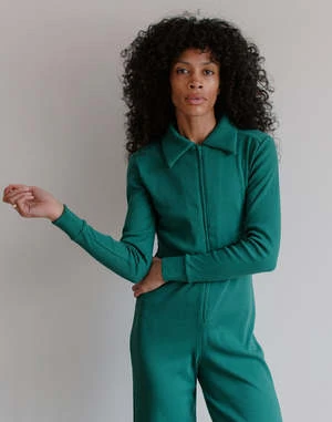 The Ribbed Jumpsuit features a subtle front zipper, a structured collar, and is accompanied by a tie (with no belt loops) to allow flexibility to tie where you’d like, if you’d like. The Jumpsuit has a subtle flare pant, for you to dress up, or casually wear, and is perfect for layering. Made with 100% GOTS certified Organic Cotton, with 2% spandex – the nature of the rib fabric makes it very stretchy, and we must say: this is our softest fabric yet.