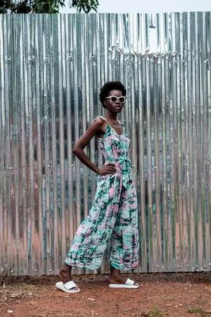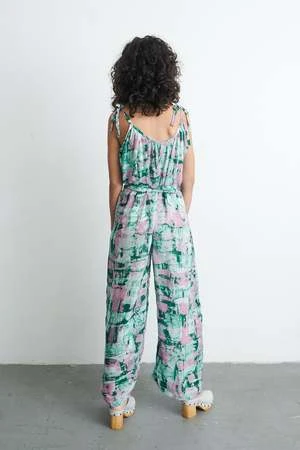 This loose fitting jumpsuit has an optional tie sash. Tie straps make the fit adjustable. Made from a lovely rayon batiste that feels like wearing thin air. We’re imagining this piece floating easily from the pool to an evening event.