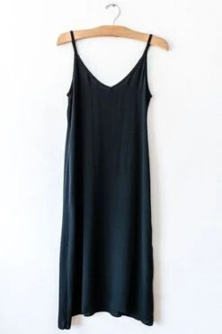 Classic silk slip dress, with v-neckline