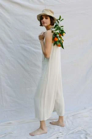 Made from deadstock rayon crepe printed with a drawing by Rachel’s mother, the Nadia dress is a feminine and wearable everyday dress. It features long full sleeves with a gathered elastic cuff, neckline ties that can be worn tied or open, and a tiered full skirt. Throw it on with boots or flats for a casual or a dressed up look.