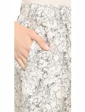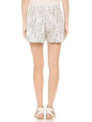 These pattern shorts feature a pleated, swingy silhouette and pockets on the seam.