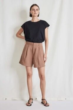 high rise, slim fit and cheeky length! Shorts feature Rollas signature back pockets, raw hem in an army green wash, crafted from a rigid, non stretch denim.