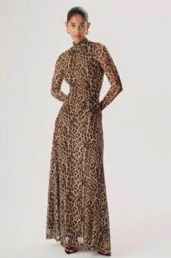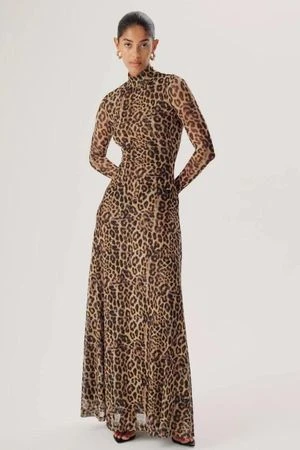 The Ember Dress is a gorgeous leopard print mesh dress that features a form fitting bodice, mock neck and long sleeves. This dress is both comfortable and sexy and perfectly elevated for any day to night look.