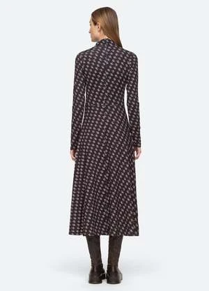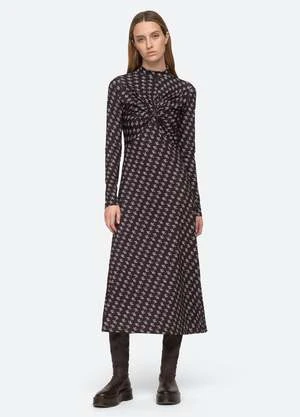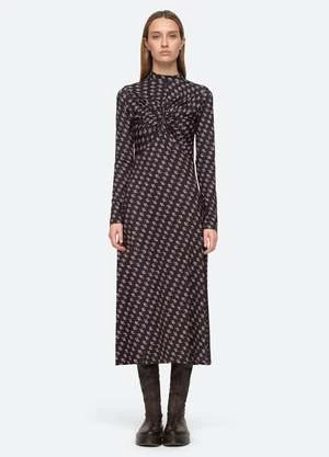 The Ada floral print long sleeve dress features a midi silhouette with ruched detailing on the bodice.