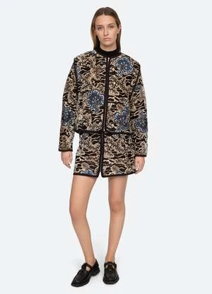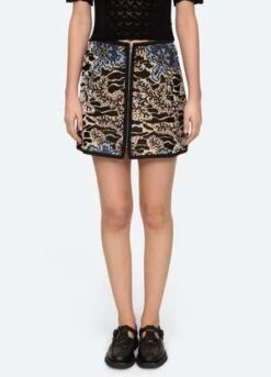 The Haley velvet embroidered skirt features contrast trim detailing, floral embroidery and exposed front zipper. Pairs perfectly with the matching Haley jacket. Please note there is variation in embroidered placement on each garment.
