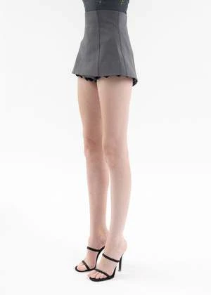 Grey plain-woven skort. High rise. Features integrated bloomer-style shorts. Elasticized cuffs. Finished with a tonal hidden zipper along the back. Tonal stitching throughout.