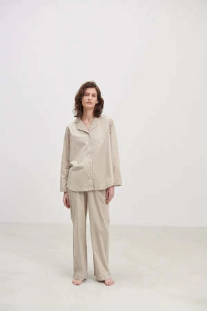 The Skall Pajamas are crafted from 100% organic cotton poplin and they are part of Skall Studio’s classic collection. The pyjama pants are loose and straight and have side pockets. The shirt has a classic PJ-fit and features a small, embroidered shell on the side of the shirt. Classic Pajamas for the cozy nights and weekends.