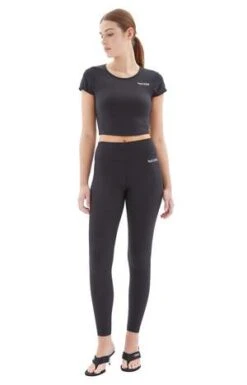 Sporty & Rich Club Logo Legging in Black. These leggings are ideal for all kinds of sports and activities. Our luxurious fabric has a soft feel and fits like a second skin. High waisted style that goes down to the ankle.