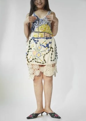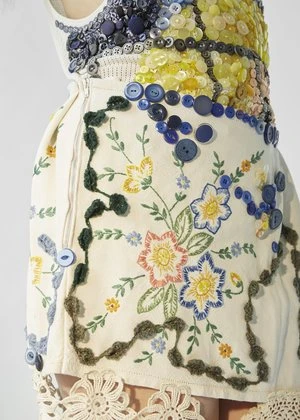 The Forget Me Not skirt is made using the finest quality vintage cotton. The skirt features beautiful floral hand embroidery, button decoration and crochet dot swirls. The hem of the skirt has been adorned with a beautiful floral doily