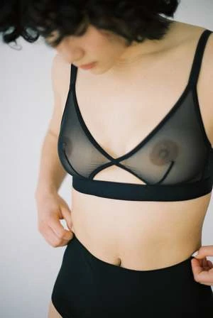 Our classic Cut Out Bra in a fine and stretch recycled tulle. No wires or padding. The ideal bra for all breast sizes. Adjustable wide shoulder straps and soft under bust band. Closing at the back with a four position fastener. Locally and ethically made. 86% Recycled Polyamide / 14% Elastane