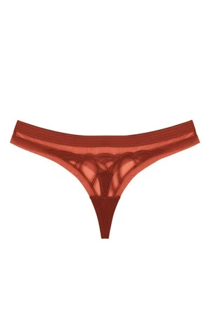 – Sienna/terra cotta colored mesh, elastic and embroidery