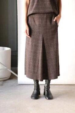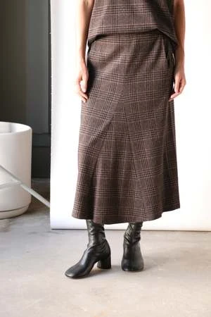 Crafted from Italian menswear cut and sewn fabric with a soft finish, the Lutz Knit Godet Midi Skirt is the perfect sartorial savior this season. This skirt sets the mood for the upcoming fall season, and it is a piece that all CPs will have a field day with. Pair back to its multiple counter parts, the Lutz Knit Tunic Top or the Cowl Neck Sleeveless top for limitless variations that will carry you through all your sartorial needs this season and beyond.