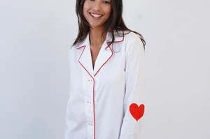 Cutest nightshirt with the Heart Patches & Red Trim! I would also wear this as a top, tuck it into some jeans or a skirt!