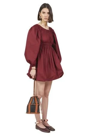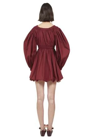 The Martine Dress is made from soft water washed poplin that is expertly gathered to create a dramatic and beautifully dimensional silhouette. A gently textured elastic seam runs along the bateau neckline, waist, and sleeves. Pair this exquisite mini dress with a heel for the perfect evening-wear ensemble.