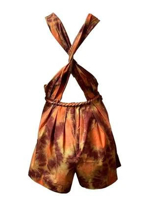 This romper by Ulla Johnson features a high neckline with a button detail, crossback and rope belt.