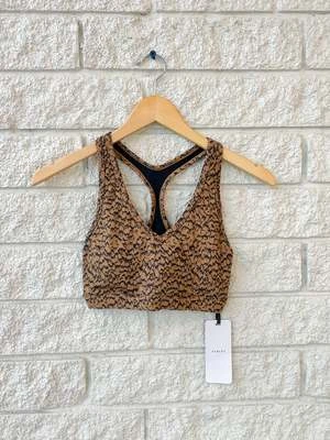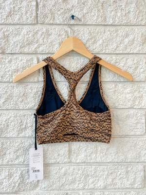 The Varley Let’s Move Park Bra in Sand Drift is designed for high performance, with a comfortable scoop neck and a contoured silhouette that moves in sync with the wearer’s body.