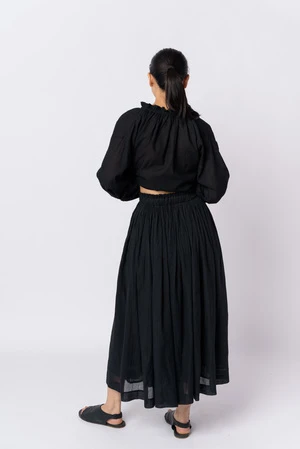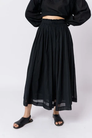 This breezy monochrome skirt features a swingy fit and the perfect midi length. Cut from soft and smooth handwoven cotton, it’s designed to sit high on the waist and has a smocked elasticated waistband with delicately falling gathers for voluminous flare.